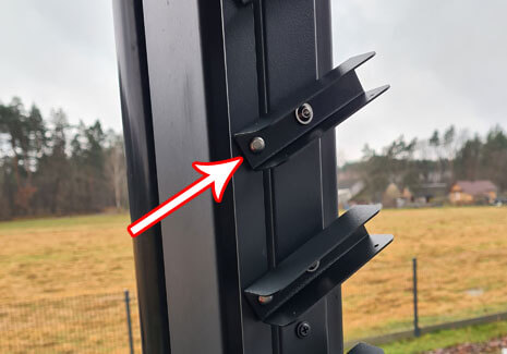 Na zdjęciu oznaczono „metalowe główki”, które łączą szynę prowadnicy. Ta strona ma wyznaczać tylną część zabudowy z żaluzji.