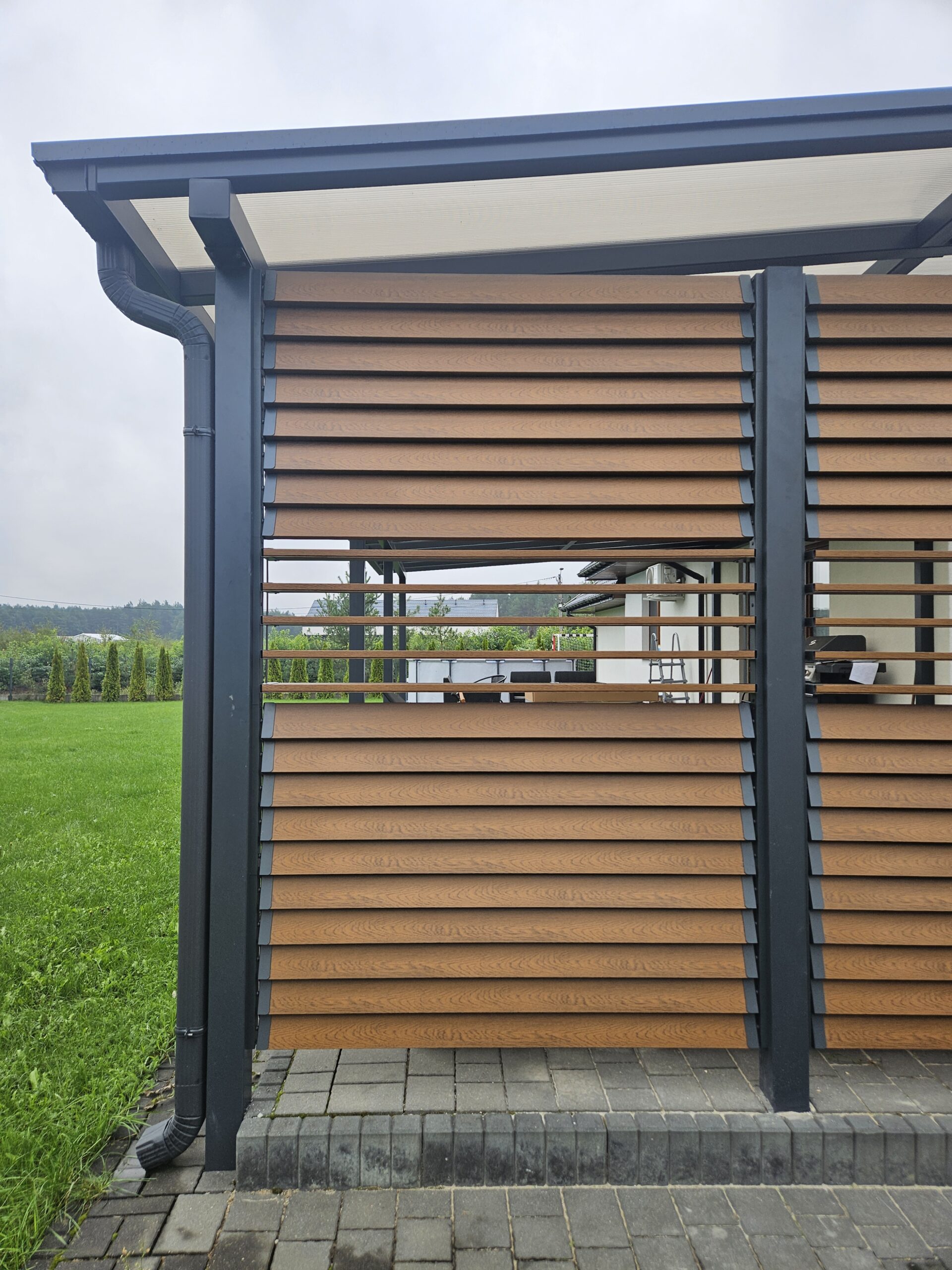 Zabudowa żaluzjami tarasowymi na bazie konstrukcji i profilach od Blach-Met