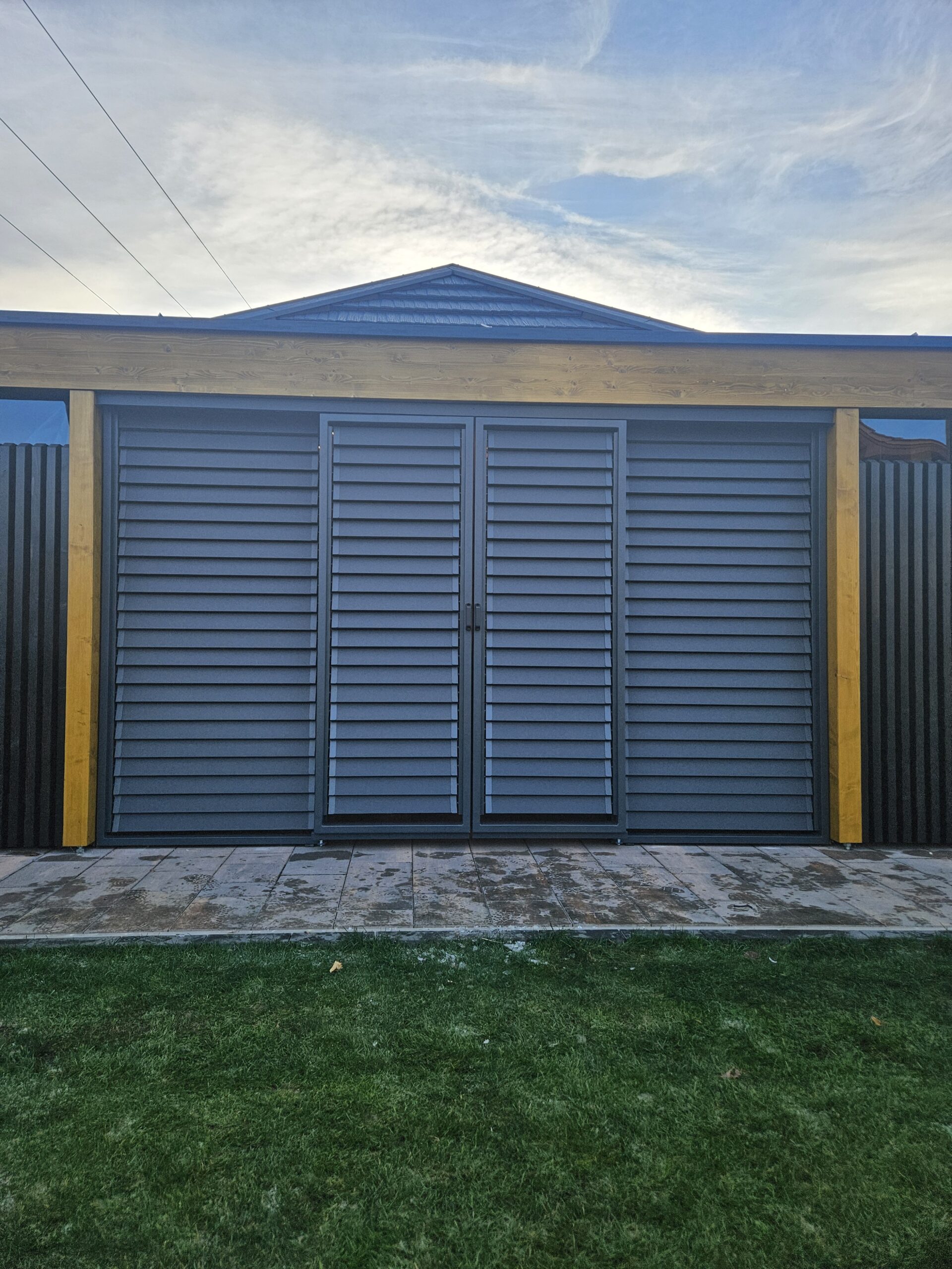 Zabudowa z żaluzji tarasowych wykonana na konstrukcji Klienta