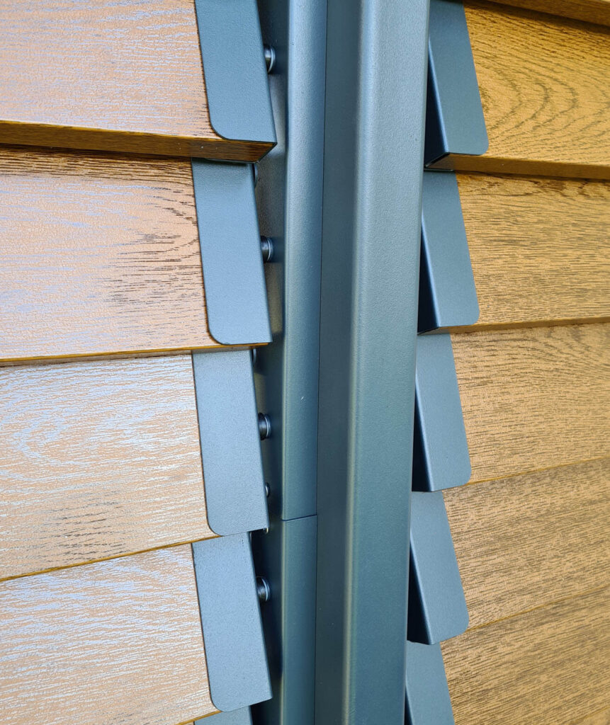 W gniazda prowadnic można montować prostopadłościenne lamelki (deseczki) z różnego rodzaju materiałów w tym drewno, aluminium, metal i inne. Polecamy nasze lamelki (deseczki) wykonane z blachy, wzmocnionej wewnątrz stalowym profilem. To gwarancja użytkowania i trwałość na lata: